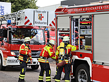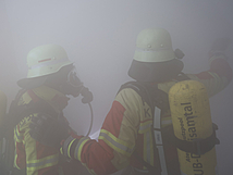Erste Erfahrungen konnten die angehenden Einsatzkräfte am ersten Termin, dem 17. Juni, sammeln, an dem mehrere Personen, die durch Übungspuppen dargestellt wurden, versteckt und ein Brandherd im ersten Obergeschoss bei dichtem Kunstnebel simuliert wurden. Nach Eintreffen der Feuerwehr gegen 19:30 Uhr mit vier Einsatzfahrzeugen und erster Erkundung der Situation durch den Zugführer wurde zunächst die Personenrettung durchgeführt. Mit schwerer Ausrüstung unter Atemschutz und dem unter Druck gesetzten Feuerwehrschlauch mussten die Einsatzkräfte die vermeintlich verletzten Personen ausfindig machen und sicher retten. Dank der modernen Ausstattung unter anderem mit Wärmebildkameras war dies trotz schlechter Sicht im dunklen Gebäude innerhalb weniger Minuten möglich. Nach der Personenrettung und Sicherung des Gebäudes wurde der simulierte Brandherd gefunden und das Feuer musste gelöscht werden.